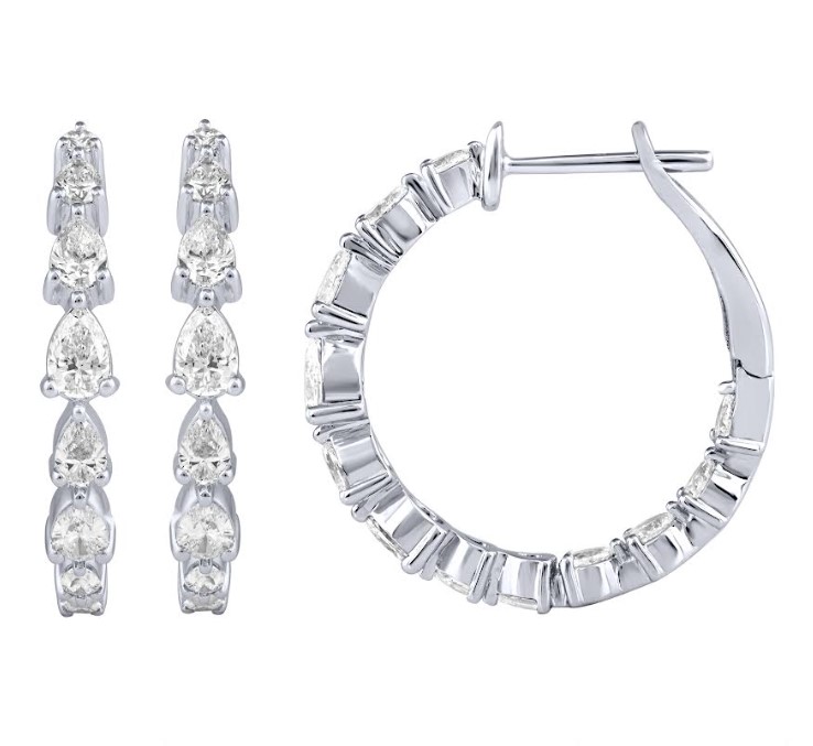 Our unique hoop earrings feature 1.42 total carat weight of pear-shaped diamonds set in 14K white gold.