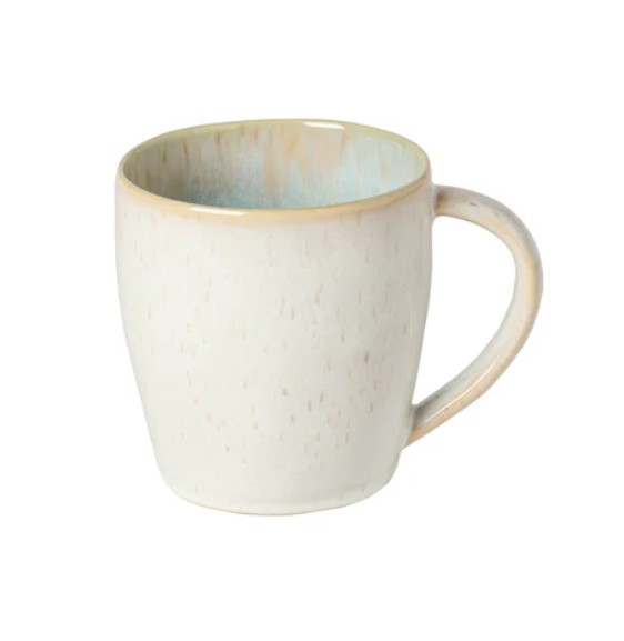 The Eivissa Mug, made from fine stoneware and crafted in Portugal, features organic shapes and a reactive glaze, making each piece unique. The reactive glaze, applied during the firing process, creates exclusive patterns and tones in each piece. This handcrafted process gives each item a distinctive individuality, ensuring that no two pieces from the same collection are alike.