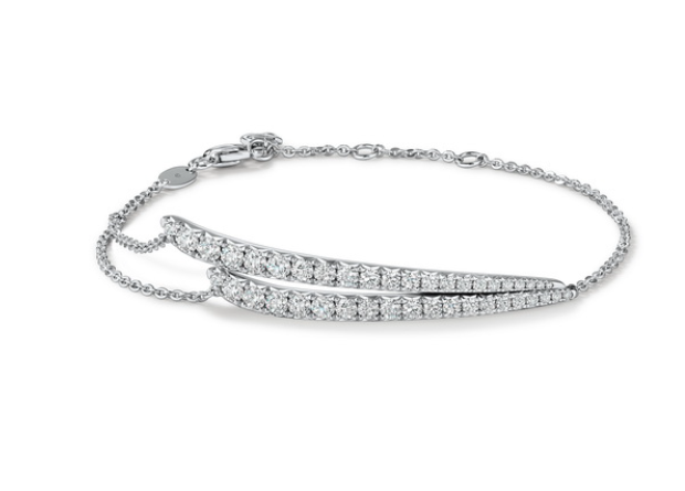 Inspired by the elegant contours of a feather, the VELA Diamond Bracelet glitters with pavé set diamonds curving around the wrist.