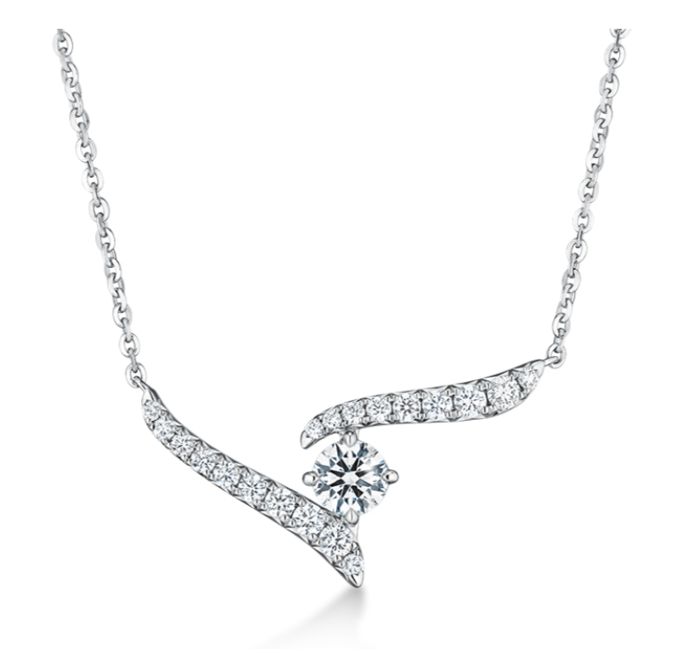 Bring out your inner glow with the VELA Crossover Pendant. A brilliant solitaire is embraced by curved diamond lines for a clean and modern look.
