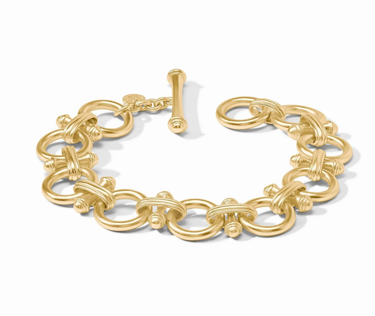 Timeless bamboo motifs are given a contemporary twist in this golden bracelet featuring round and oblong links with enclosed bamboo elements, closing with an adjustable bamboo toggle.