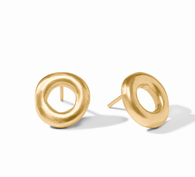Resembling undulating ripples of liquid gold, these open studs’s burnished texture softly shines and shimmers.