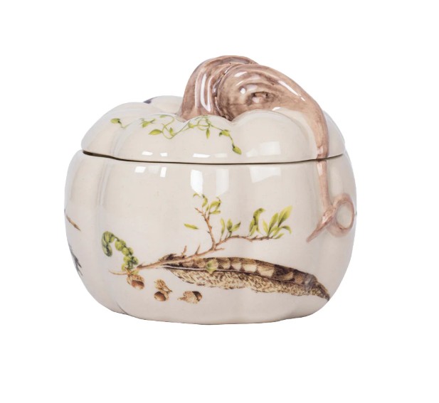 Made of ceramic, these petite pumpkins are designed for baking! From the oven to the table, individual servings make everyone feel special, especially when filled with mini apple crumbles or French onion soup, and their sculptural little lids keep contents hot. Bedecked in our Forest Walk motif upon a creamy background to artistically capture the rich natural beauty of the season and set a magical scene! We also adore them for dressing up place settings and giving as hostess, teacher or party gifts.
