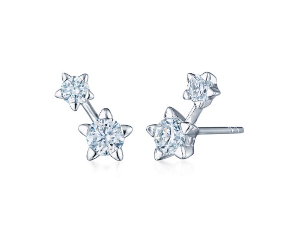 Two round brilliant diamonds in star-shaped settings seem to float against earlobes. Each stone is meticulously cut to the worldÂs highest standards for maximum beauty and brilliance and set in 18K white gold.