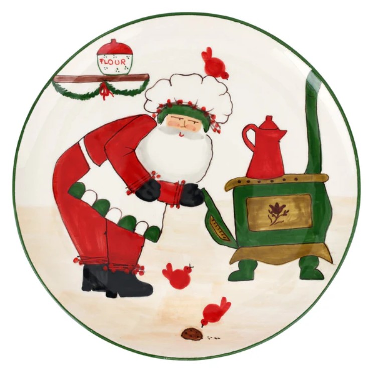 Inspired by childhood memories of Babbo Natale, ItalyÂs Santa Claus, maestro artisans handpaint the Old St. Nick Large Round Platter with Oven, providing us a glimpse into Old St. NickÂs daily adventures leading up to preparations for each holiday season. Baking festive treats is always on Babbo Natale’s list!