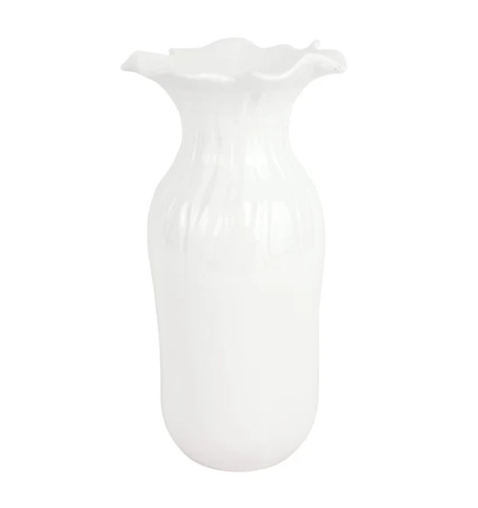 Inspired by the gently undulating waves of the Mediterranean sea, the Ondulata White Large Vase is characterized by its rippling, organic shape, and it is beautiful with colorful florals or on its own as a home decor accent.